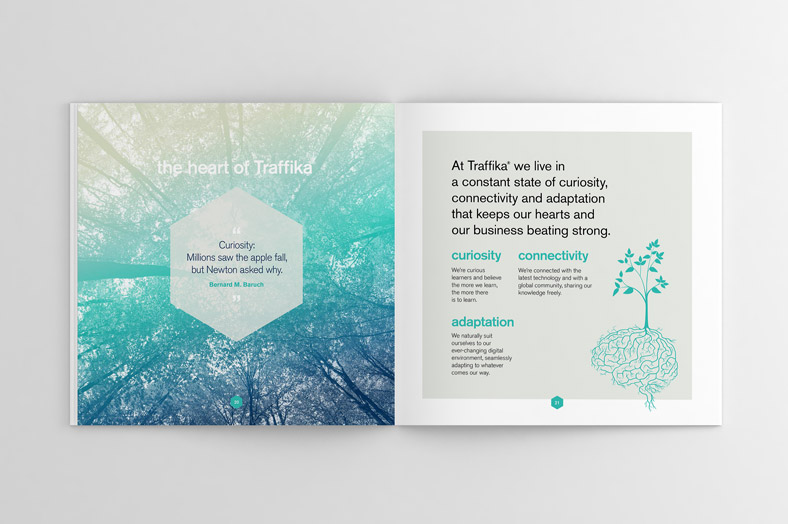 Traffika are a dynamic digital agency that are leaders in delivering strategy to help businesses achieve their online marketing goals. Two Trees Creative have worked with Traffika regularly to produce editorial and social share imagery in order to keep fresh content flowing from the Traffika brand. Two Trees Creative also undertook a major upgrade to the styling of their brand during the process of creating key sales material such as books and brochures.